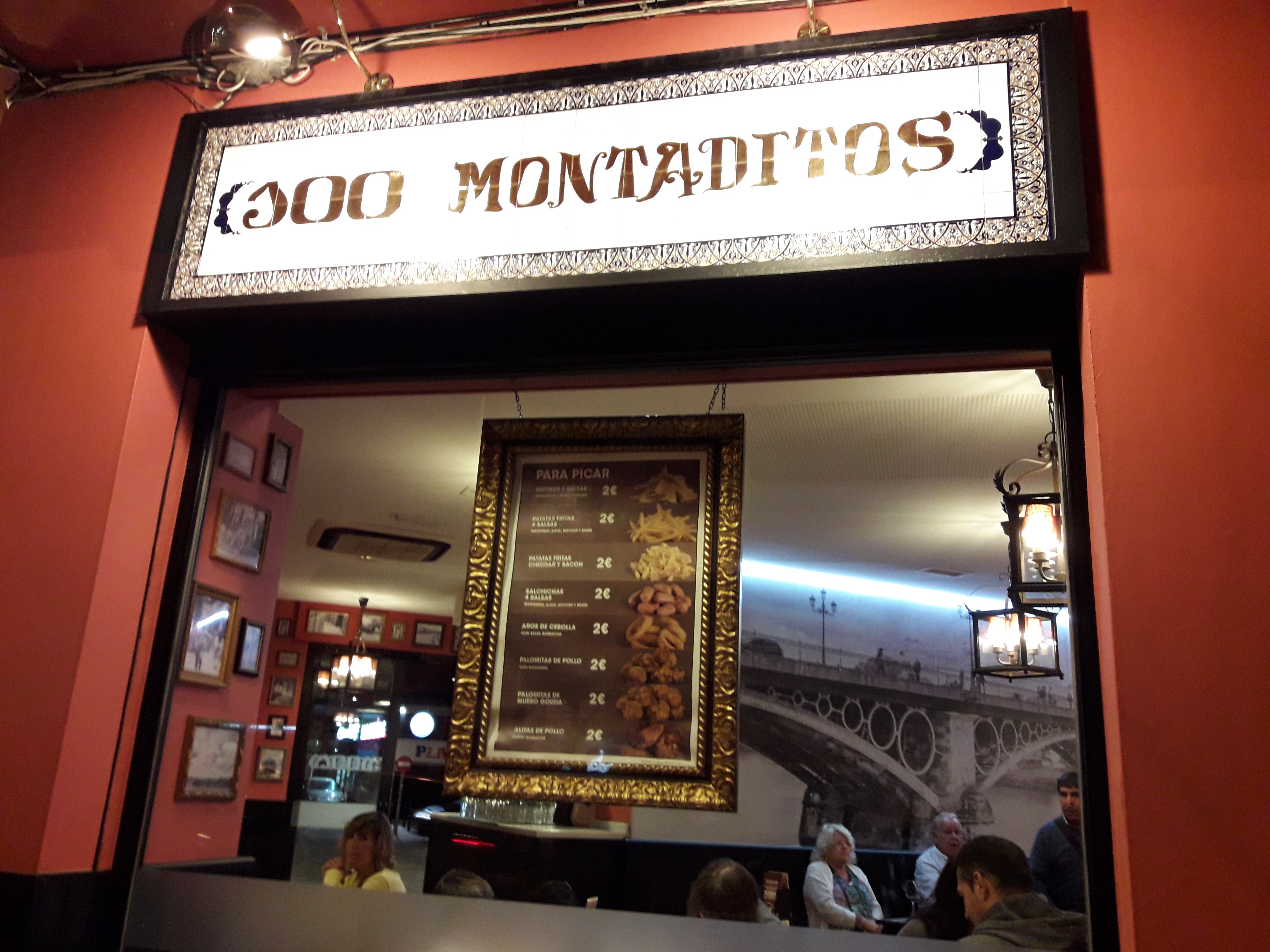 100 mini sandwichs et tapas à 1 ou 2 euros pièce. Vous écrivez sur une feuille vos choix, et on vous remet un disque clignotant qui bipera lorsque votre commande sera prête, vous allez au comptoir chercher votre commande.